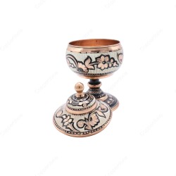 Enjoy your tea / coffee time with this handmade copper serving bowl which is made in Anatolia, by our crafted coppersmiths. It is premium quality, made of thick copper and has gorgeous engravings on with fine craftsmanship. Serve your friends or guests' coffee with this stunning copper bowl and just be ready for receiving the compliments.
