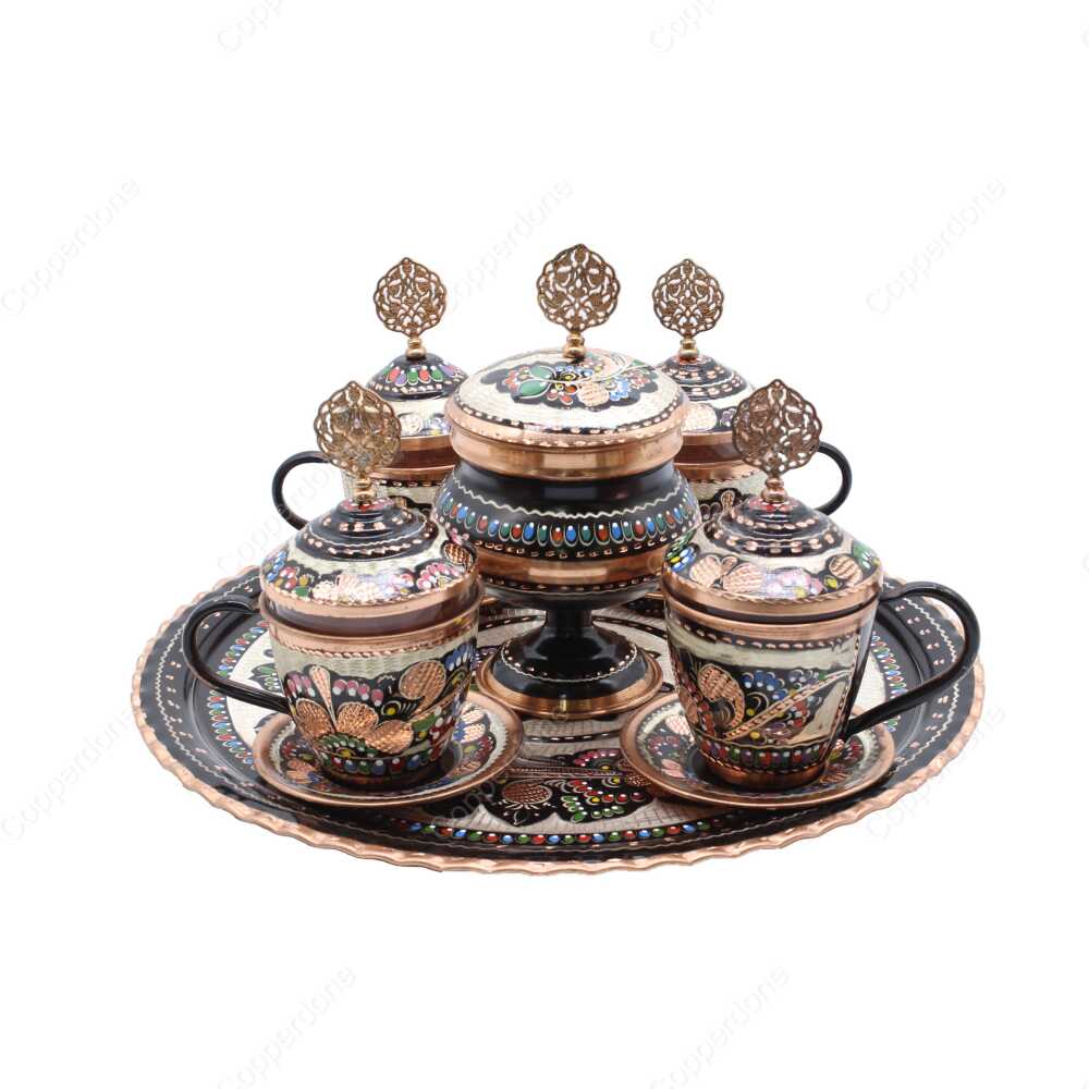 Copperdone el yapımı bakır kahve setleri, yemek deneyiminizi benzersiz kılar ve günlük kullanımın yanı sıra özel günlerinizde sunumlarınızın vazgeçilmez bir parçasıdır.