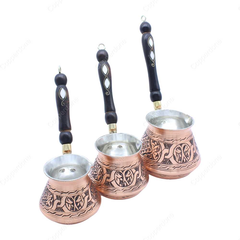 El yapımı bakır cezvelerimizle birlikte kullanmak üzere sitemizdeki bakır fincanları, kahve setleri ve lokumluklarımızı da inceleyebilirsiniz.