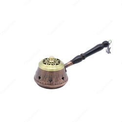 Copperdone handcrafted copper incense holder with wooden handle. It is thick enough for any incense burning process.