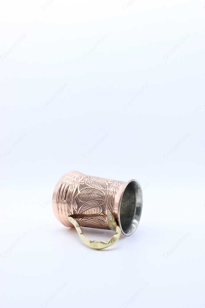Copperdone el yapımı bakır kupa kullanım amacına göre 1-1.5 mm kalınlığında bakırdan imal edilmiş olup, ana gövdeye sabitlenmiş pirinç kulplar bulunmaktadır. Üzerlerindeki işlemeler bakır ustalarımız tarafından Gaziantep tarzı olarak belirtilen yöntemle tek tek işlenerek hazırlanmış ve sizlere sunulmuştur.